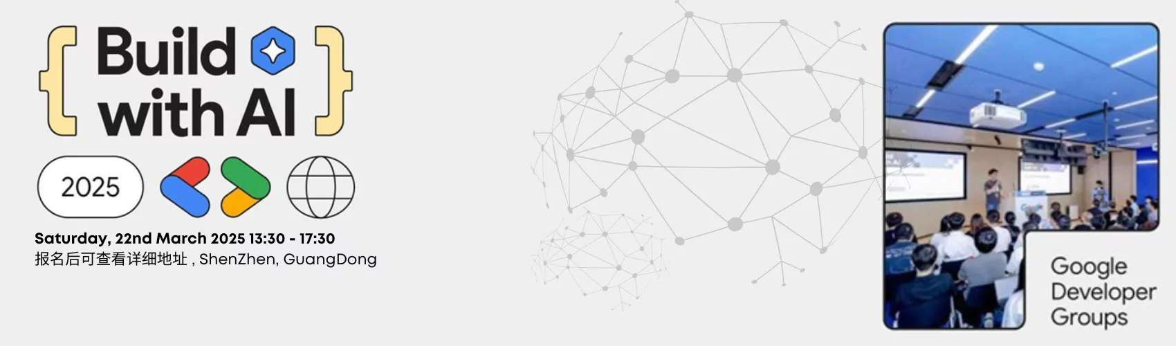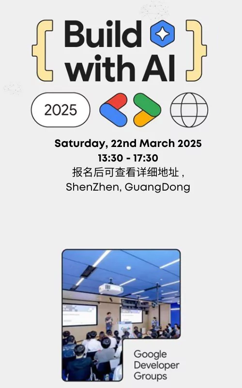 欢迎加入我们深圳 GDG Build With AI 活动!在这里,技术爱好者、学生和专业人士将齐聚一堂,共同探索人工智能的变革力量。深入了解人工智能开发的基础知识,并与其他创新者合作,利用最新的人工智能工具和平台创建独特的项目。无论您是经验丰富的程序员还是刚刚入门,本次活动都将激发您的灵感,促进社区学习。
