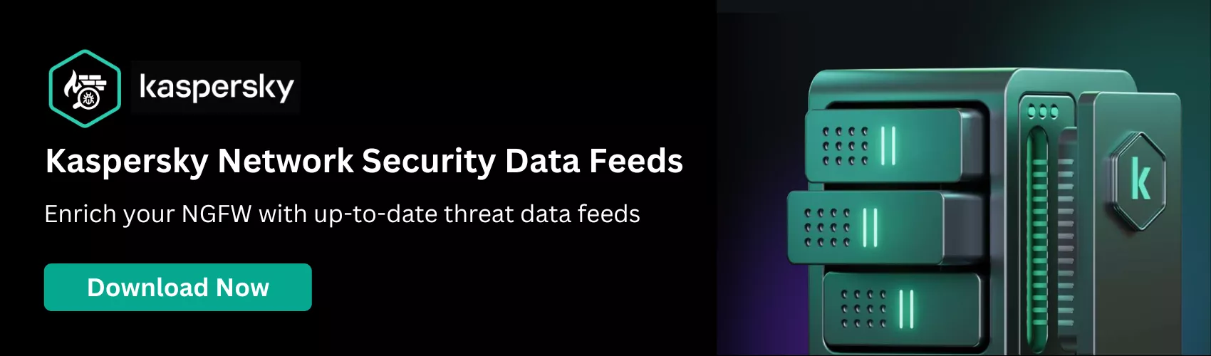 Empower your Next Generation Firewall’s capabilities with real-time, insightful Threat Data Feeds from Kaspersky. Our intelligence enhances businesses to detect and block malicious activity more efficiently — without complex integrations or costly upgrades.