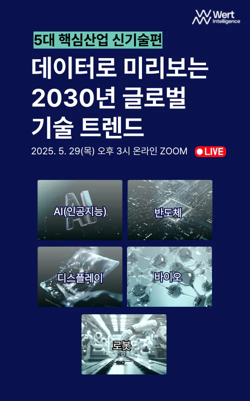 버티컬 AI와 빅데이터 분석을 기반으로 글로벌 5대 핵심산업인 AI(인공지능), 반도체, 디스플레이, 바이오, 로봇 분야의 기술 트렌드와 기업이 주목해야 할 신기술을 소개합니다.