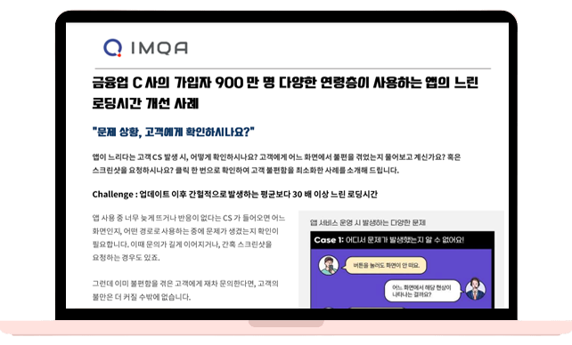 앱이 느리다는 고객 CS 발생 시, 어떻게 확인하시나요? 고객에게 어느 화면에서 불편을 겪었는지 물어보고 계신가요? 혹은 스크린샷을 요청하시나요? 클릭 한 번으로 확인하여 고객 불편함을 최소화한 사례를 소개해 드립니다.