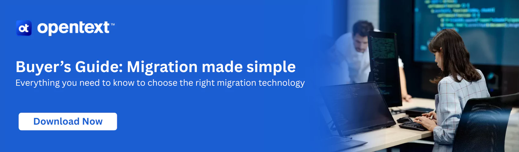 Download the eBook and discover how OpenText™ Migrate helps you move data, apps, and workloads with near-zero downtime across cloud, virtual, and physical environments.