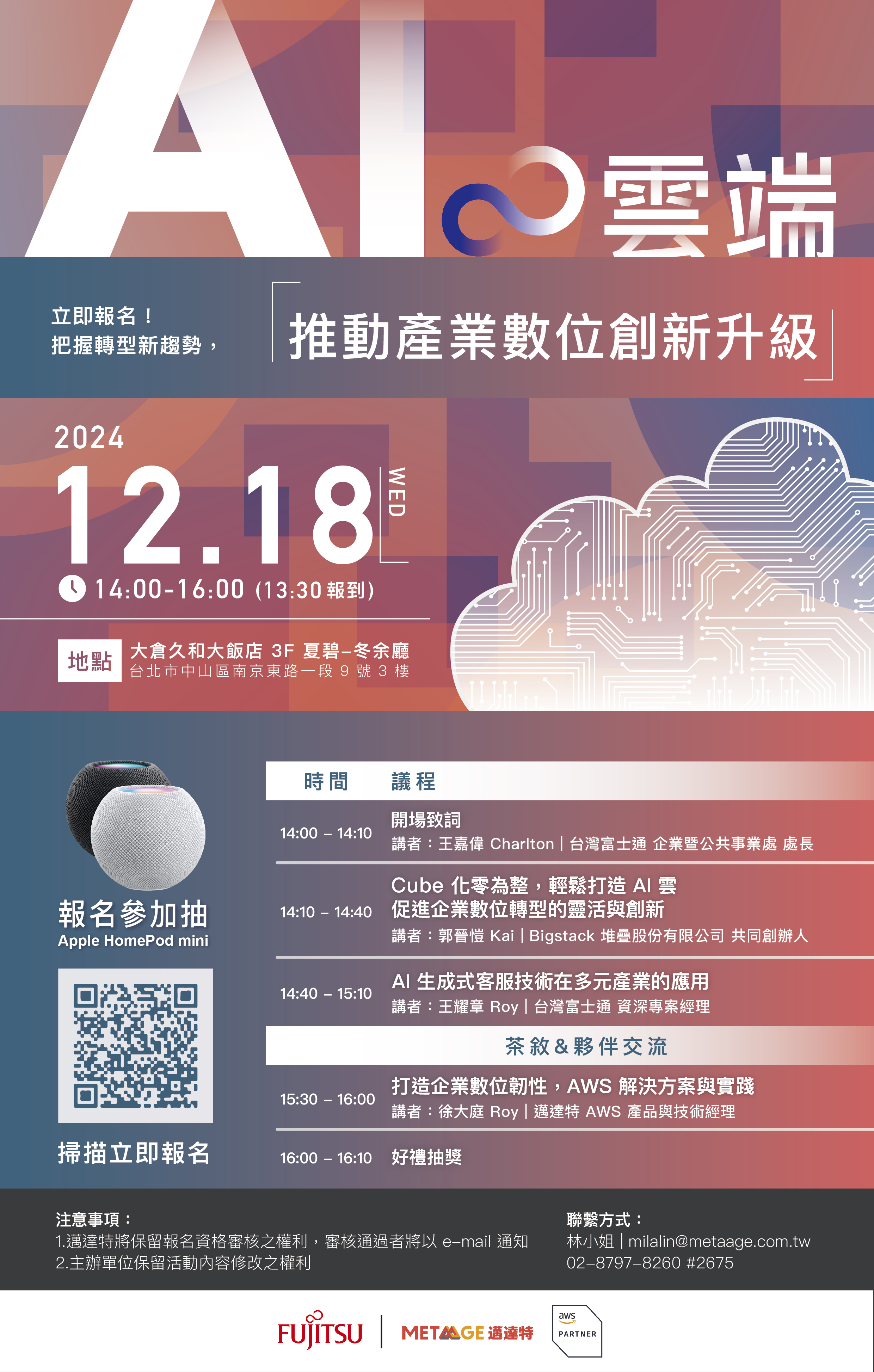 本場活動將專注於 AI 與雲端技術如何引領企業打造創新 IT 未來。